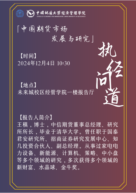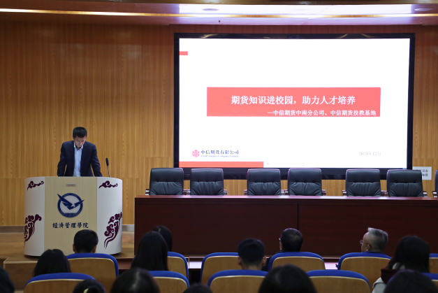 随后,由中信期货董事总经理、研究所所长、王稹博士为与会人员和相关专业员工共计60余人做了一场题为“中国期货市场发展与研究”的学术报告。