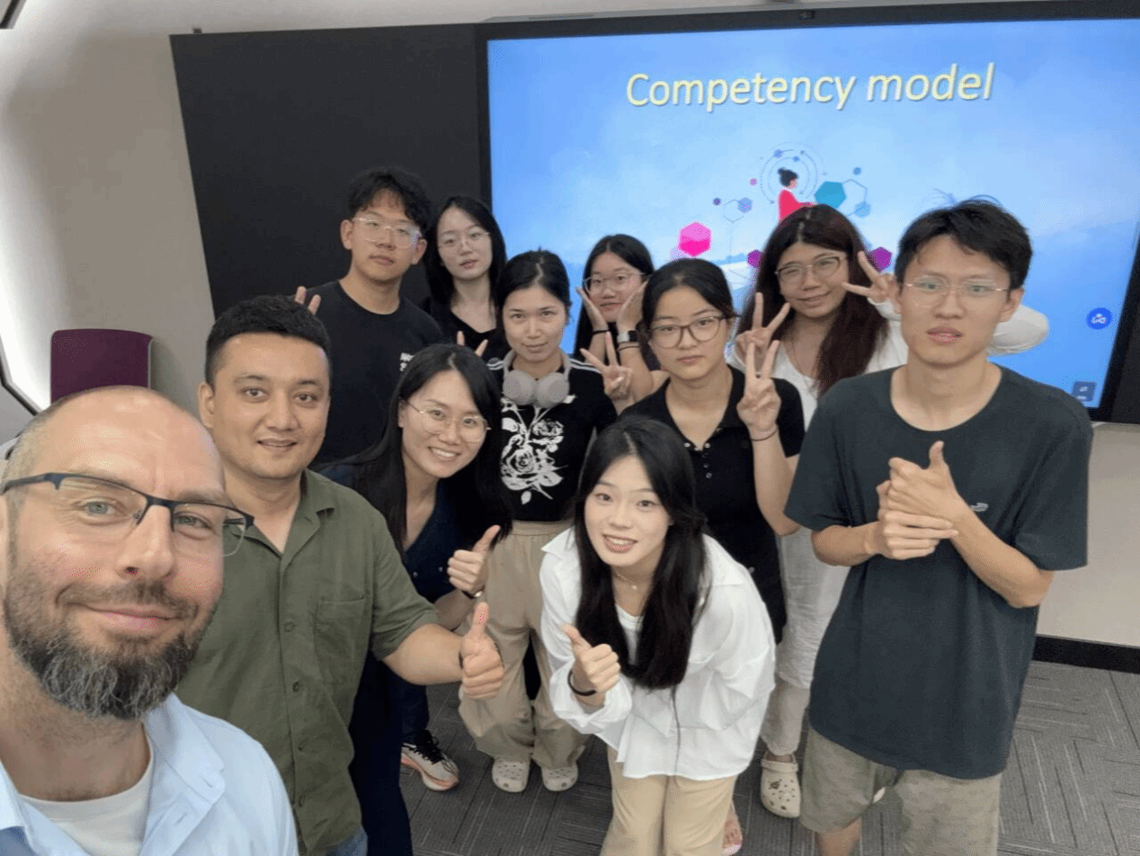 6月10日,DMITRIEV博士在太阳成集团122ccvip智慧教室授课。他结合胜任力模型、T型技能及70-20-10学习法则等前沿理论,引导员工通过真实案例分析企业战略目标设定、学习需求评估及学习型文化建设。课堂采取互动研讨方式帮助员工掌握管理模型的实际应用,培养全球化视野与创新思维。
