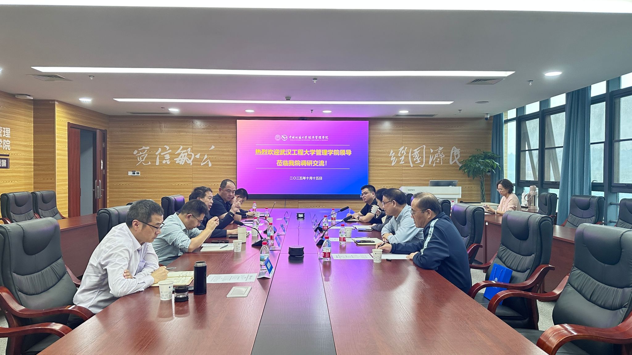 杨昌锐书记介绍了公司在党建引领、实验室建设及人才培养模式创新方面的探索与成效。於世为经理重点分享了公司近年来在年终绩效分配改革方面的探索与成效,详细介绍了公司如何通过科学合理的绩效评价体系,激发教师教学科研积极性。闫华飞经理介绍了武汉工程大学管理公司在绩效改革、青年教师激励及案例教学方面的经验做法。双方还就本科人才培养方案优化、专业硕士培养管理、案例开发激励等议题进行了深入交流。