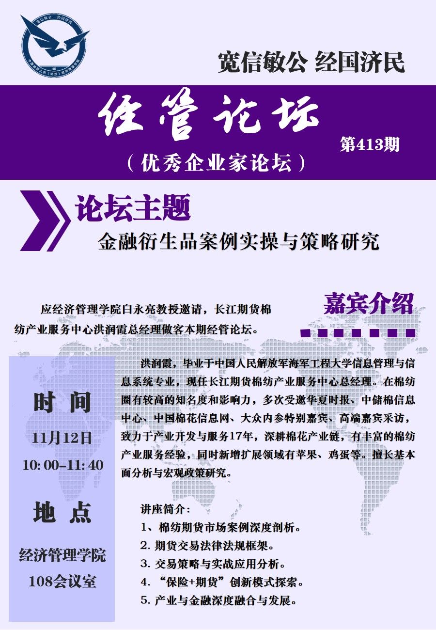 经管论坛(第413期)【优秀企业家论坛】金融衍生品案例实操与策略研究
