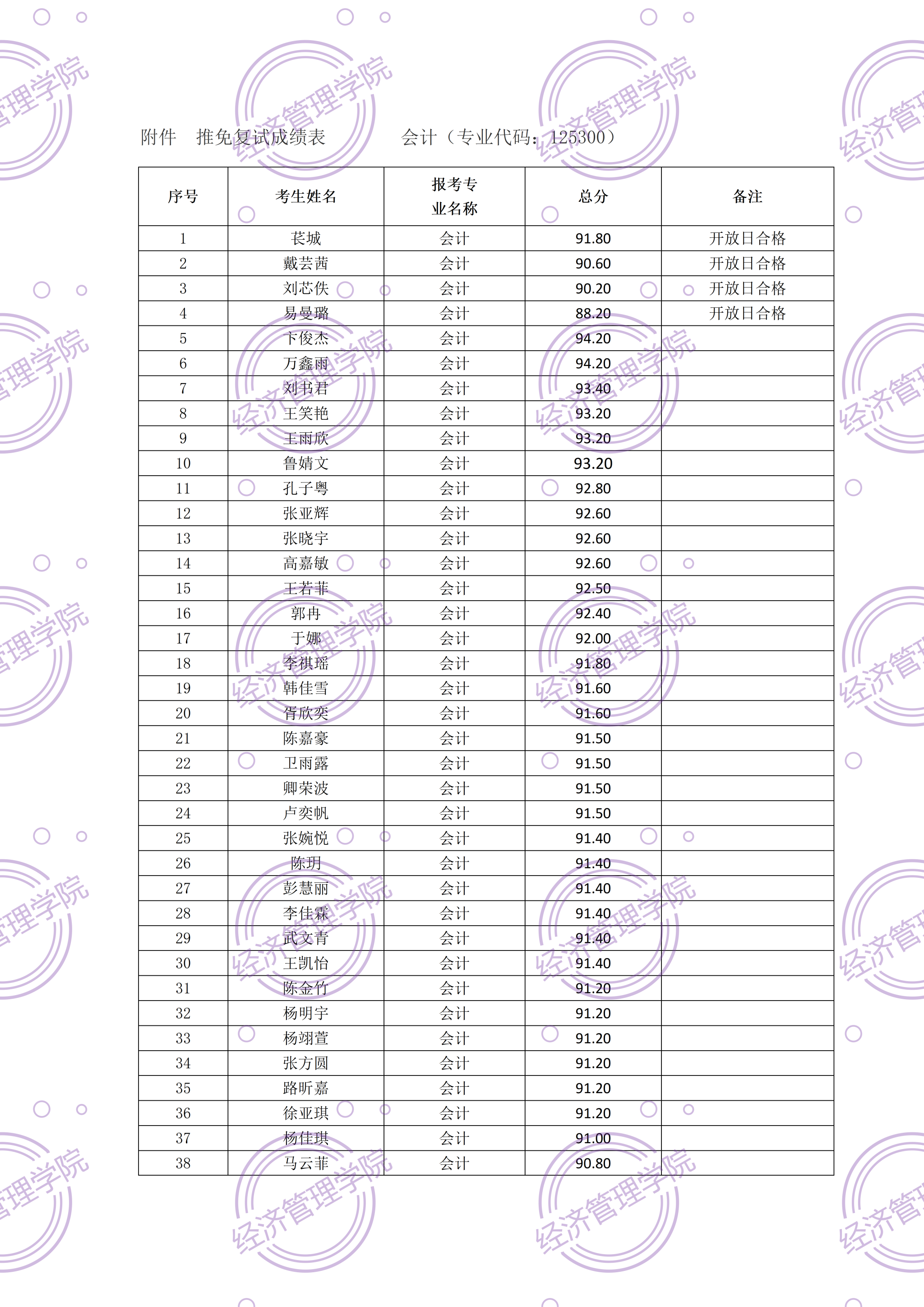 按公司相关文件规定,现对公司2025年接收会计专业硕士推免复试成绩予以公示(详见附件)。