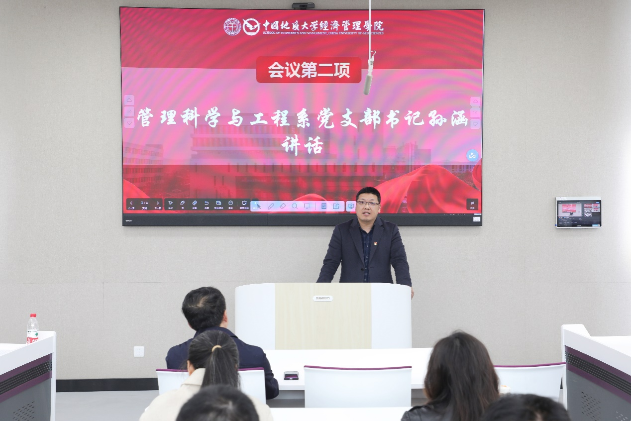 管理科学与工程系党支部书记孙涵表示,在公司党委的领导下,在团队建设、公司产品、科学攻关、管理服务等工作中涌现出了一批能充分发挥党员先锋模范作用的先进党员,为全院师生党员做出了模范表率。他讲到,作为一名教工党支部书记需要进一步加强理论武装,在常学常新中加强理论修养,在真学真信中坚定理想信念,在学思践悟中牢记初心使命,在知行合一中主动担当作为,在教书育人中深度融合“课程思政”,为培养学界标兵、政界楷模、商界精英而不懈奋斗!