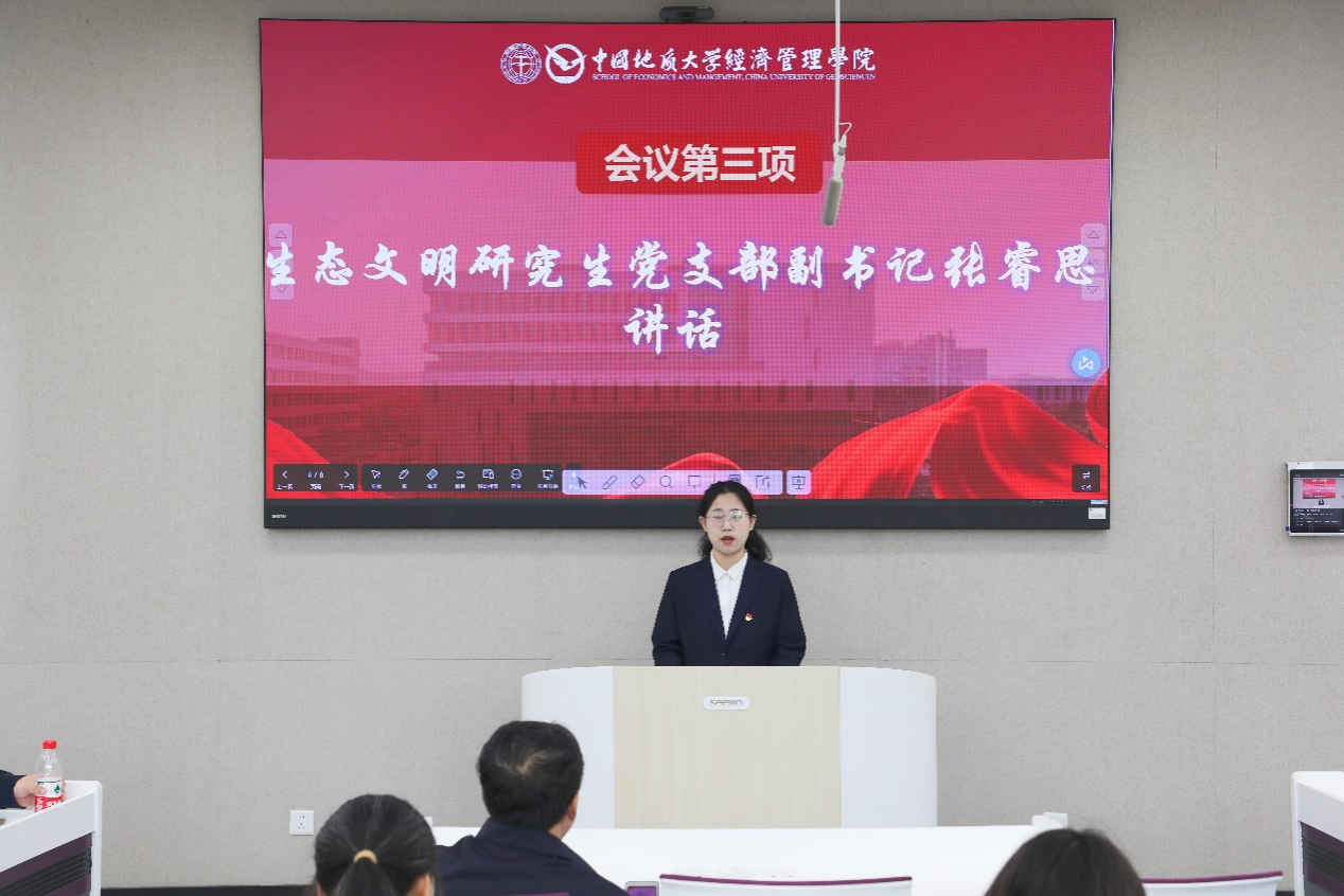 生态文明研究生党支部副书记张睿思表示,作为公司的首批研究生样板党支部,将会以习近平新时代中国特色社会主义思想和党的二十大精神为指导,深学笃行习近平生态文明思想,坚持文化为魂、科研为本、服务为要的建设思路,积极探索“党建+文化传承”“党建+科研实践”“党建+服务大局”三位一体的党支部发展模式,从不同维度最大限度地发挥党建引领作用,全力打造“党建红”领航“生态绿”的党建品牌,支部将全力抓住公司党委入选全国党建工作标杆院系培育创建单位的契机,努力做好支部发展,为标杆院系验收添砖加瓦,为公司党委创新建设和公司高质量发展贡献青春力量!