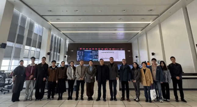 在湖北省国际货运机场有限公司党委副书记作左丽敏等的陪同下,公司师生一行首先参观了花湖机场综合楼沙盘、运行控制中心(AOC)及观景平台,实地感受机场作为国家级航空货运枢纽的规划布局、科技运营与党建业务融合实践,对其在服务湖北“建成支点”战略、构建现代物流体系中的重要地位有了更深刻的认识。