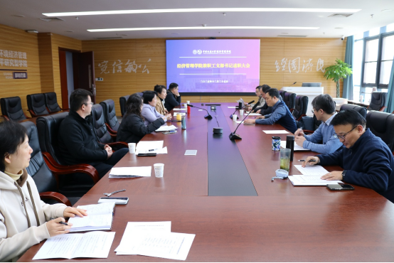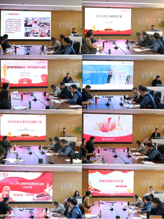 述职评议环节,各教工党支部书记立足支部特色与工作实际,以“述真、述深、述实”为导向,系统盘点2025年度党建工作履职情况,全面呈现工作成效与特色亮点。一方面,紧扣深入学习贯彻党的二十大和二十届四中全会精神、中央八项规定精神等主线,重点汇报了结合经管学科特色开展的理论学习创新举措、特色党建活动载体及成效,将理论武装与学科实践的深度融合;另一方面,围绕党支部标准化规范化建设核心任务,对照“七个有力”建设要求系统复盘工作推进情况,既亮明了教育党员、管理党员等基础工作的扎实成效,也分享了组织师生、服务师生等重点工作的创新实践,全方位勾勒出各支部党建工作的鲜活风貌与责任担当。