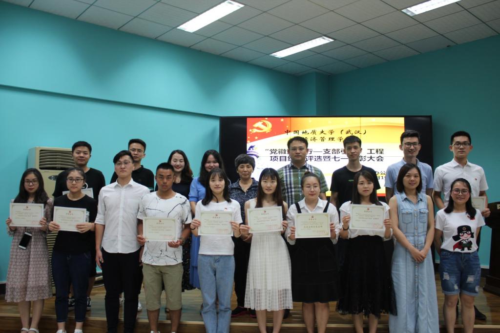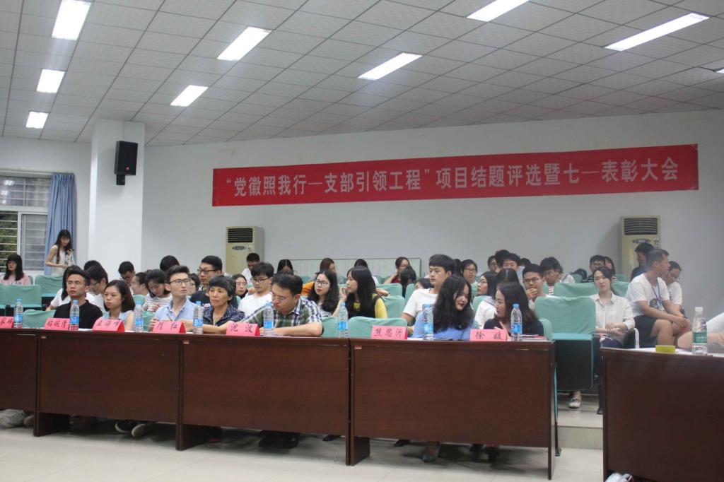 018年6月19日晚19:00,太阳成集团122ccvip2017-2018年度“党徽照我行——支部引领工程”项目结题评选暨七一表彰大会在北一楼报告厅顺利召开。公司党委书记隋红书记,副书记沈波书记,学工组全体成员老师以及本科生党支部、研究生党支部、经管员工会主席团代表们参与了本次大会。