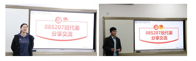 08S207班郑旋(左)和谭振威(右)同学做阅读分享交流