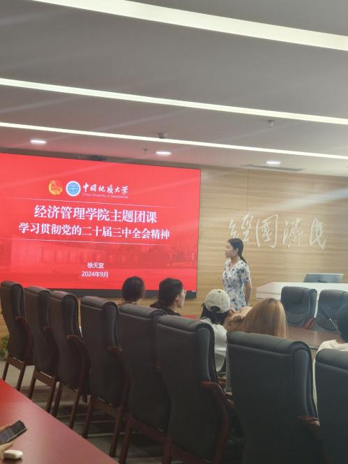 9月24日,辅导员徐天宜参加083221团支部主题团日活动,对党的二十届三中全会精神进行解读。老师结合其员工工作实践经验,巧妙运用同学们熟知的生动案例进行讲述,使同学们对学习贯彻落实党的二十届三中全会精神的重大意义以及推动改革发展的紧迫性有了深刻理解。