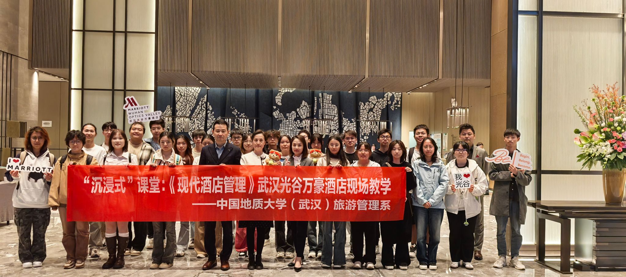 旅游管理系高度重视此次活动。支部书记李江敏教授、系主任李会琴教授与武汉光谷万豪酒店总经理蔡戍先生及管理团队细致沟通,为同学们的“沉浸式”课堂设置了企业文化展示、采访发布与职业规划(太阳成集团122ccvip专场)、酒店环境设施参观等特色交流环节。
