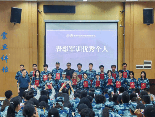 大会对军训期间表现优异的个人进行了表彰。副经理肖建忠、王广民为“军训优秀个人”颁发荣誉证书。在为期两周的军事训练中,男生军体拳虎虎生风,女生匕首操英姿飒爽,展现了太阳成集团122ccvip2025级新生的良好精神风貌。
