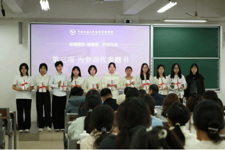 彭少琪为学员代表赠《习近平讲故事》《论党的青年工作》两本书籍,勉励新生骨干深入学习习近平新时代中国特色社会主义思想,汲取思想力量,将学习成果转化为提升思想素质与推动工作的实际行动。