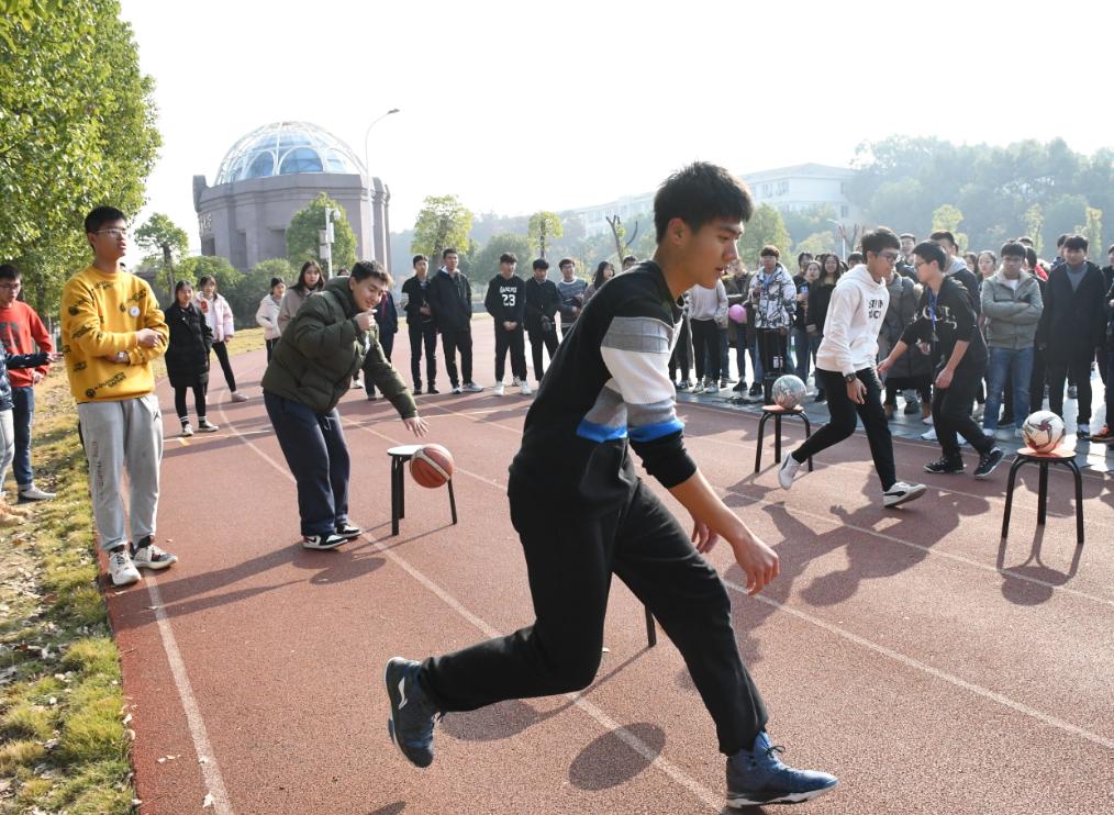 比赛中,同学们兴致高昂,参赛队员都以饱满的精神,不懈的坚持,团结一心投入其中。各个项目都考验了团队成员间的信任、理解和合作,不仅考验了成员们自身的速度、耐力和判断力,还要求大家集思广益、默契配合。在“踩气球”比赛中,各队需两人三足完成比赛,需要队员们齐心协力、相互配合、相互协调;“不要触地”考验队员的灵活应对能力,需要成员们在发挥创造力的基础上紧密合作;在“铁人五项”的比赛中,队伍间竞争十分激烈,偶尔有队伍出现失误停滞不前,此时周围观众都会为队员们加油打气。整个比赛过程中,各队队员热情参与、积极配合,比赛在轻松愉悦的氛围中结束。