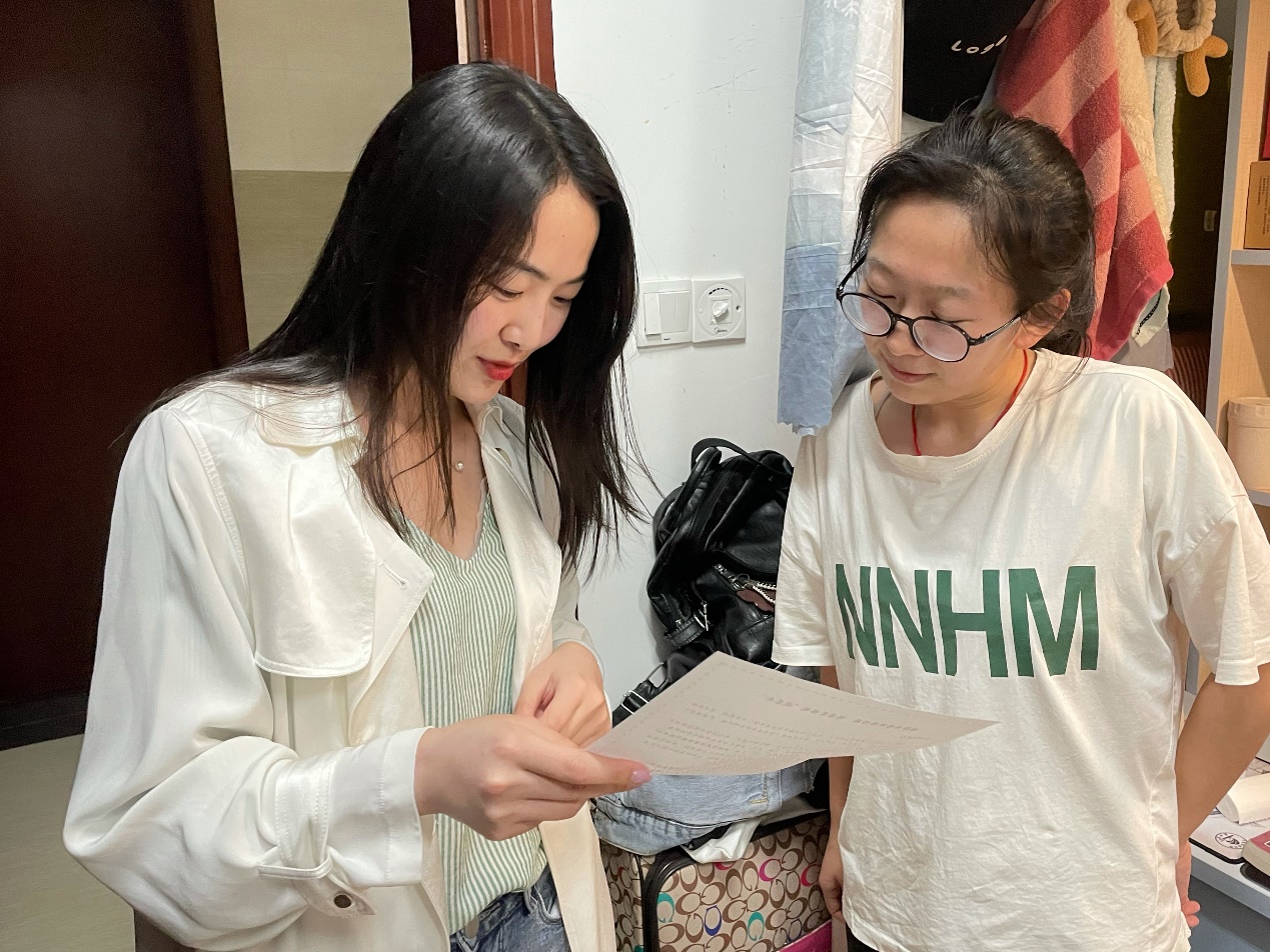 图1.辅导员深入南望山校区员工宿舍发放一封信