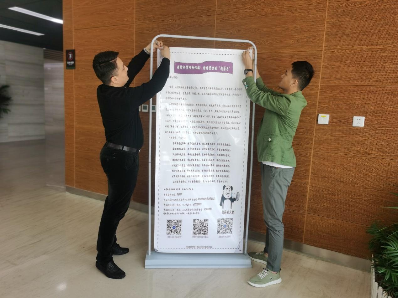 2021年4月28日-30日,全体专兼职辅导员联合本研员工干部、员工党员、志愿者组成宣传队,走访了两校区员工宿舍、课堂、研究生工作室等员工活动场所。通过师生发放公司制定的《谨防诈骗 请捂紧您的“钱袋子”》一封信,张贴保卫处发放的《今天你被骗了吗?》宣传单,设置《谨防诈骗》大海报等方式,宣传教育全体同学学习防诈骗知识和案例,关注下载“国家反诈中心APP”、“地大保卫”公众号等官方发布媒体,了解掌握传统和新型诈骗手段方式,切实引导员工提高自身安全防范意识。