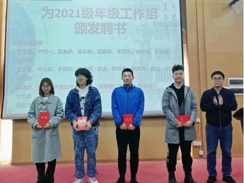 随后,徐老师对2021级年级工作组上学期的表现进行了肯定,公司党委副书记李少杰为年级工作组成员颁发聘书。