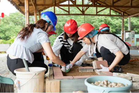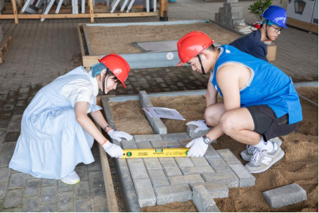 第二项活动是园林设计劳动。大家以小组为单位,按照图纸要求通过组内合作,搭建徽州园林微景观。园林微景观的搭建课程融合多学科内容,涵盖了土壤、植物、测量和建筑等学科知识。通过师生团队合作共同搭建园林沙盘,既能让员工体验到自然魅力,也让同学们增强了团队合作意识,在实践中提高自我的理论联系实际能力,感悟大国工匠精神,体会到劳动者的不易和劳动的价值。