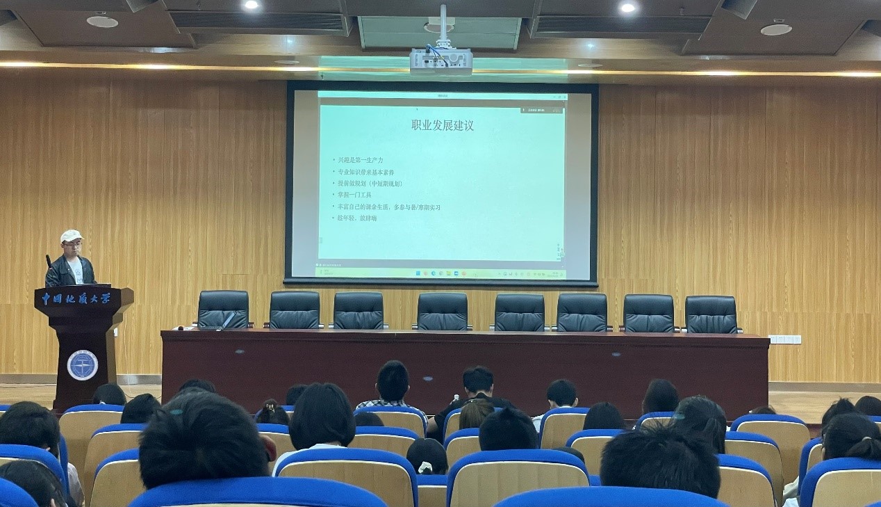 第一位向同学们分享的员工是现就职于北京的夏乐学长,他是2007级信管专业的毕业生,是本专业较为早期毕业生的一员。首先,他向同学们提供了同届毕业生的毕业去向:国外大都是美国、新西兰地区;国内则聚集在北京、深圳和武汉区域。然后,夏学长简单分析了本专业的未来形势,对2030年持乐观估计,认为我们未来可期。最后,他为同学们总结了一些学习生活规划建议,鼓励我们大胆试错,多参加竞赛与实习,在毕业后也不能浮躁,为自己规划十年的深潜期。