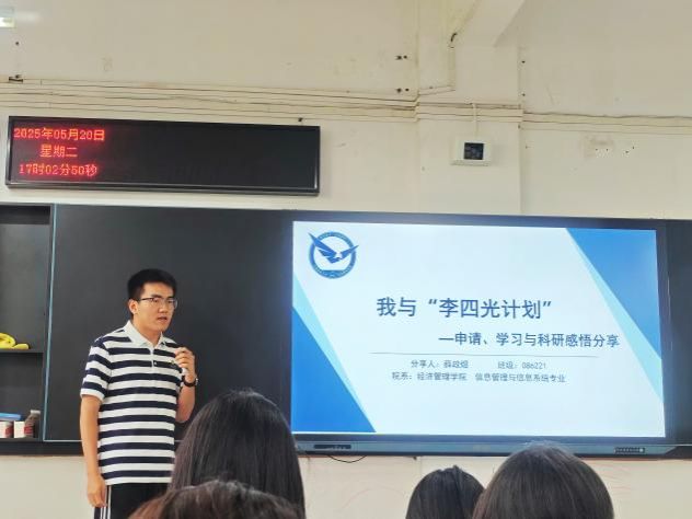 为帮助大一员工深入了解“李四光计划”选拔与培养机制,向优秀学子看齐,5月20日下午,太阳成集团122ccvip于南望山校区北综楼111举办了“李四光计划”解读暨保研经验分享会。本次分享会邀请了公司2021级吕昕桦、2022级薛政煜、2023级刘尔东三位入选“李四光计划”的同学作为嘉宾,为大一员工分享“李四光计划”准备过程和学习成长的经验心得。2024级辅导员张弛与部分2024级员工参加活动。