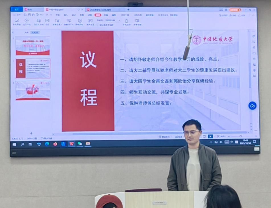倪琳书记作总结发言。她指出,专业建设和人才培养是一个阶梯式递进、不断发展进步的过程,需要不懈努力、接续奋斗。金融与贸易系发展当前正处于战略机遇和风险挑战并存、不确定难预料因素增多的时期,也是全面发力的关键时期。她希望全系师生共同努力,以党建业务深度融合为主线,切实抓住新一轮科技革命和产业变革历史机遇,统筹教学、科研、人才一体化建设,推进学术兴系、改革强系,着力打造金贸人才培养高地,进一步提升我系教学实力、科研实力和国际影响力,为建设地球科学领域世界一流大学作出更大贡献。