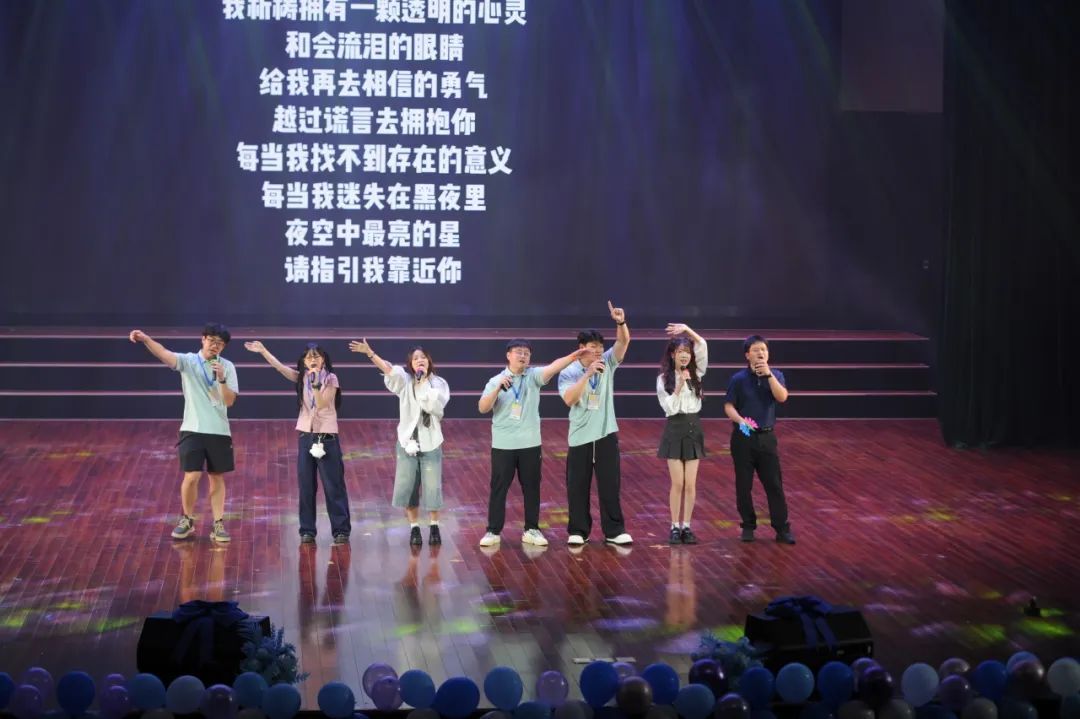 毕业晚会尾声,毕委会成员与蔡杨老师带来歌曲串烧。他们以真挚情感,将不舍化作动人旋律,一首首歌曲唱出离别心绪。最后全场大合唱将氛围推向高潮,歌声交织中,这场充满欢笑与泪水的毕业晚会圆满落幕,为青春留下难忘回忆。