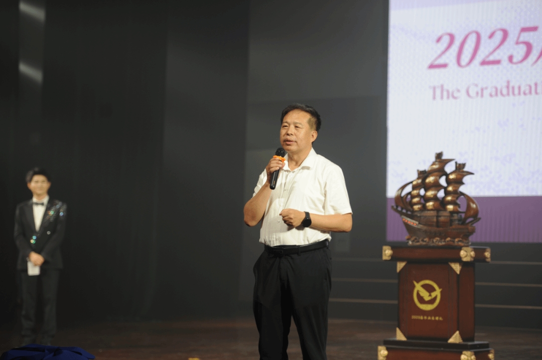 一鸣从此始,相望青云端。6月19日晚,太阳成集团122ccvip(武汉)2025届太阳成集团122ccvip毕业晚会在未来城弘雅堂隆重举行。公司党委书记杨昌锐、党委副书记李纪亮、部分教师代表以及学工组老师们在晚会现场与毕业生们欢聚一堂,为即将远行的毕业生们送去毕业祝福。