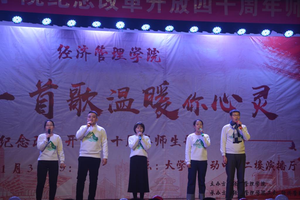 本次歌会分为“春回大地”“激情岁月”“乘风破浪”“继往开来”四个篇章,以歌曲的形式纪念了改革开放走过的极不平凡的四十年,用最温情的方式增进了师生间的感情,拉近了师生间的距离,每一首精心准备、深情演唱的歌曲都表达了经管人对党和祖国的热爱。歌会结束后,参加歌会的2017级本科生张康激动地说;“第一次看到这么多自己的老师上台表演,气氛真的很活跃。感谢这场歌会让我们多对讲台下的老师有了更多的了解,祝福公司越来越好,也祝福祖国改革开放的道路越走越宽广!”