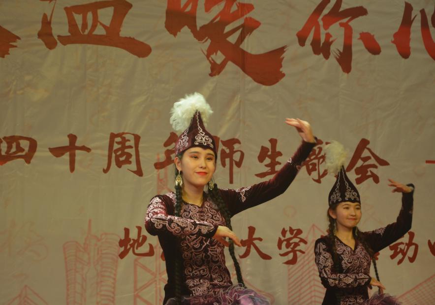 民族舞串烧精彩纷呈,维吾尔族同学伊孜热·迪力穆拉提的《喀什姑娘》舞姿灵动,辅导员努尔夏提·居勒提上台与她共舞,引得观众们欢呼连连;蒙古族同学敖东、苏荣联袂演绎的《乌兰巴托的夜》温婉动人;藏族姑娘次仁央珍、次央带来歌舞《吉桑卓玛》;哈萨克族女孩古丽帕娜·托力肯、加吾哈尔·波拉提拜、热娜尔·叶尔波拉提热情的舞蹈《天鹅湖》魅力四射。
