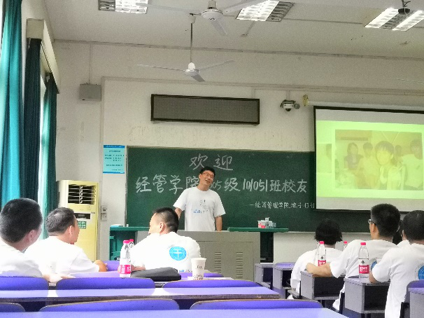 当天下午,经管地子归社团引导101051班全体员工参观校园,在公司大门、弘毅堂、操场、隧道、教室等留有青春印记的熟悉场景合影留念,并在教三楼203教室开展“十年再续手足深情 今朝再创卓越佳绩”主题班会。员工们齐聚一堂,观看大学时光回忆录,分享他们毕业后的工作状况、家庭生活和内心感触,字里行间里表达对母校的思念,热泪盈眶怀念曾经的师生、同学情