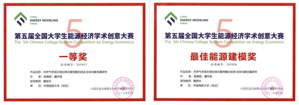 近日,第五届全国老员工能源经济学术创意大赛总决赛在中国矿业大学举行。由公司应用经济学专业吴德胜和资产评估专业龚年姣二位研究生组成的参赛团队,提交的学术作品《天然气市场价格松绑与管网整合的多主体均衡仿真研究》,经过初赛会评,决赛答辩,最终荣获全国一等奖,并在中国能源模型论坛中,成为唯一荣获最佳能源建模奖的研究生团队,经济学系龚承柱副教授荣获优秀指导教师,公司被授予优秀组织单位。