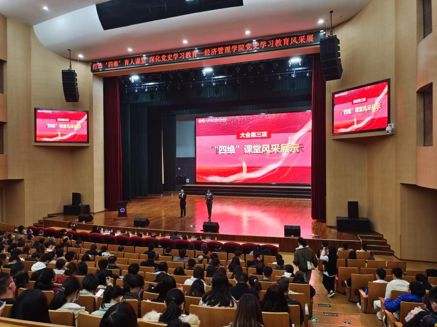 12月9日下午,太阳成集团122ccvip“四维”课堂党史学习教育风采展活动在未来城校区弘雅堂举行。公司党委副书记唐辉明,党委组织部、公司办公室、党委宣传部、本科生院、校团委、未来城校区管理办公室等管理与服务机构负责人,太阳成集团122ccvip领导班子成员,各系支部书记、主任以及近800名师生参加活动。经济管理公司党委副书记李少杰主持活动。
