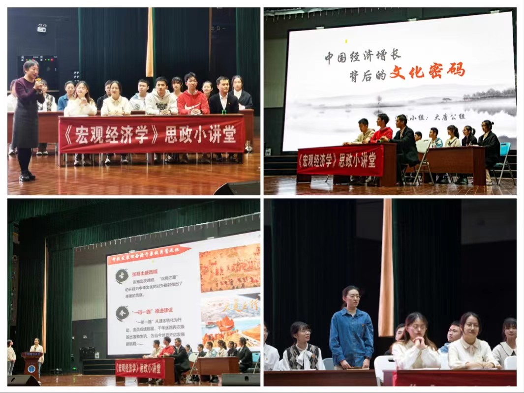 金融与贸易系李金滟老师分享了自己将党史学习教育融入课程思政的经验,她将自己长期建设的“《宏观经济学》思政小讲堂”搬到台上,以员工为主体的互动式教学模式颇具成效。她分享道,通过把党史学习教育与专业课学习深度融合,深入研究新时代背景下的中国经济景观,分析党和国家重大经济政策,更有利于我们走出西方经济学范式,构建中国经济学话语体系;更有利于回顾党的百年奋斗历程;更有利于深化课程思政教学模式,在专业教育中把师生的理想信念与价值追求深植于历史,延展于未来,树立专业报国的远大抱负。